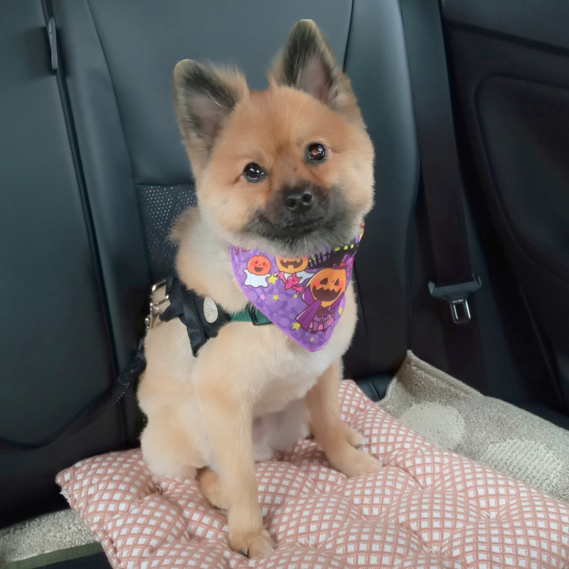 ハロウィンの手ぬぐいを巻いてもらってサパーリ♬