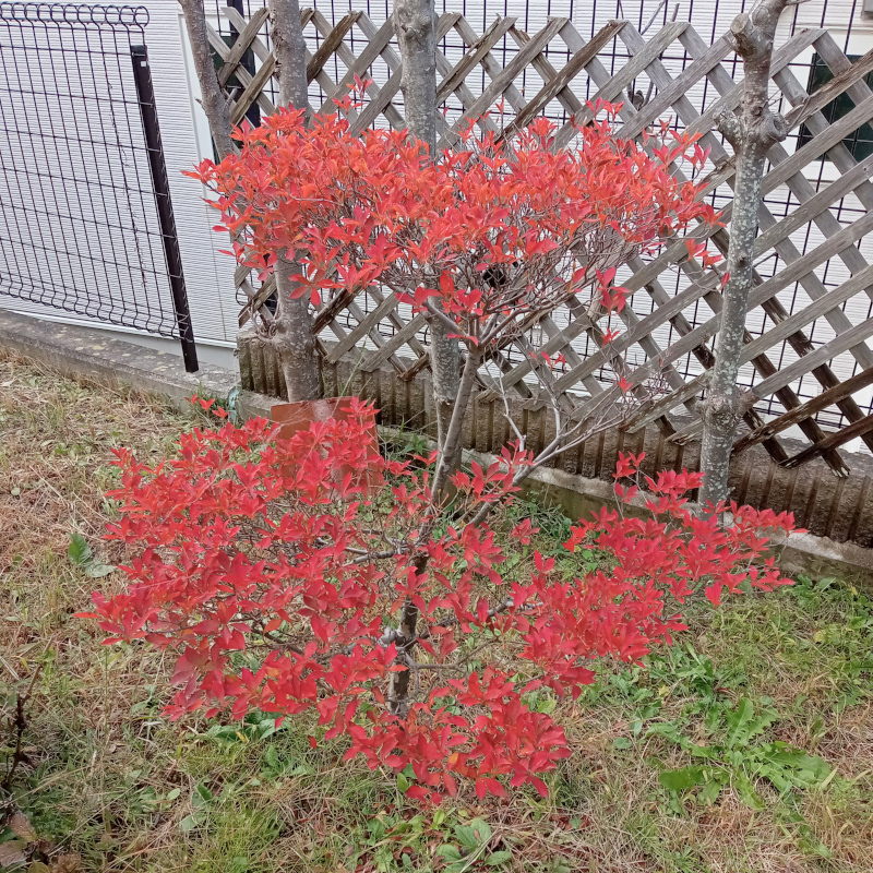 庭のドウダンツツジも真っ赤です。